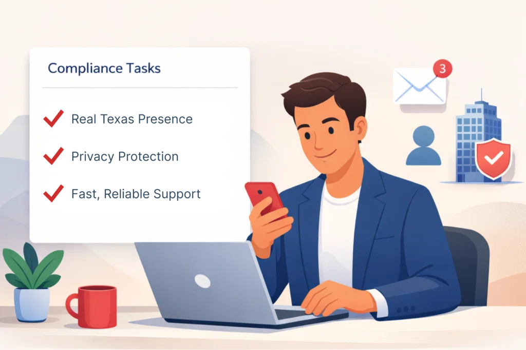 Whether you’re launching a new company, expanding into Texas, or managing your business remotely, we make it simple, secure, and affordable.