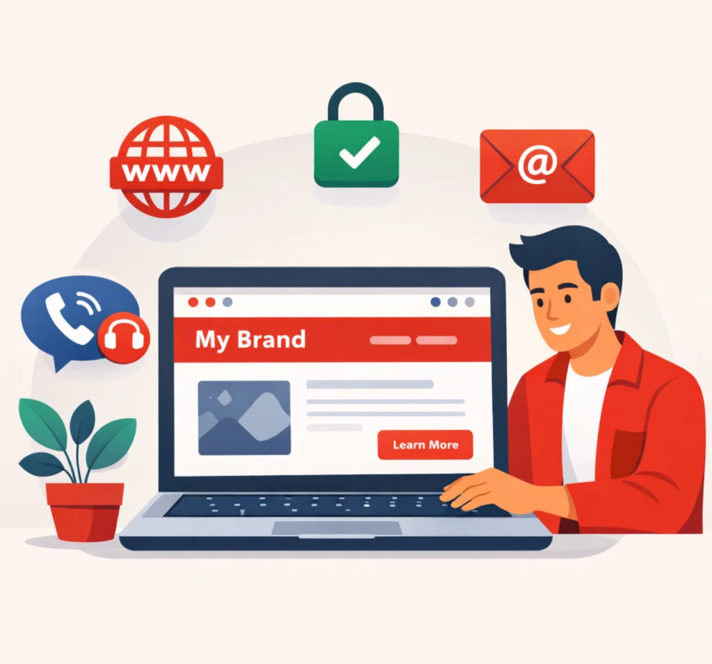 Launch your business online with confidence. Get a domain, website, SSL security, business email, and phone service—free for 90 days when bundled with registered agent or formation services.