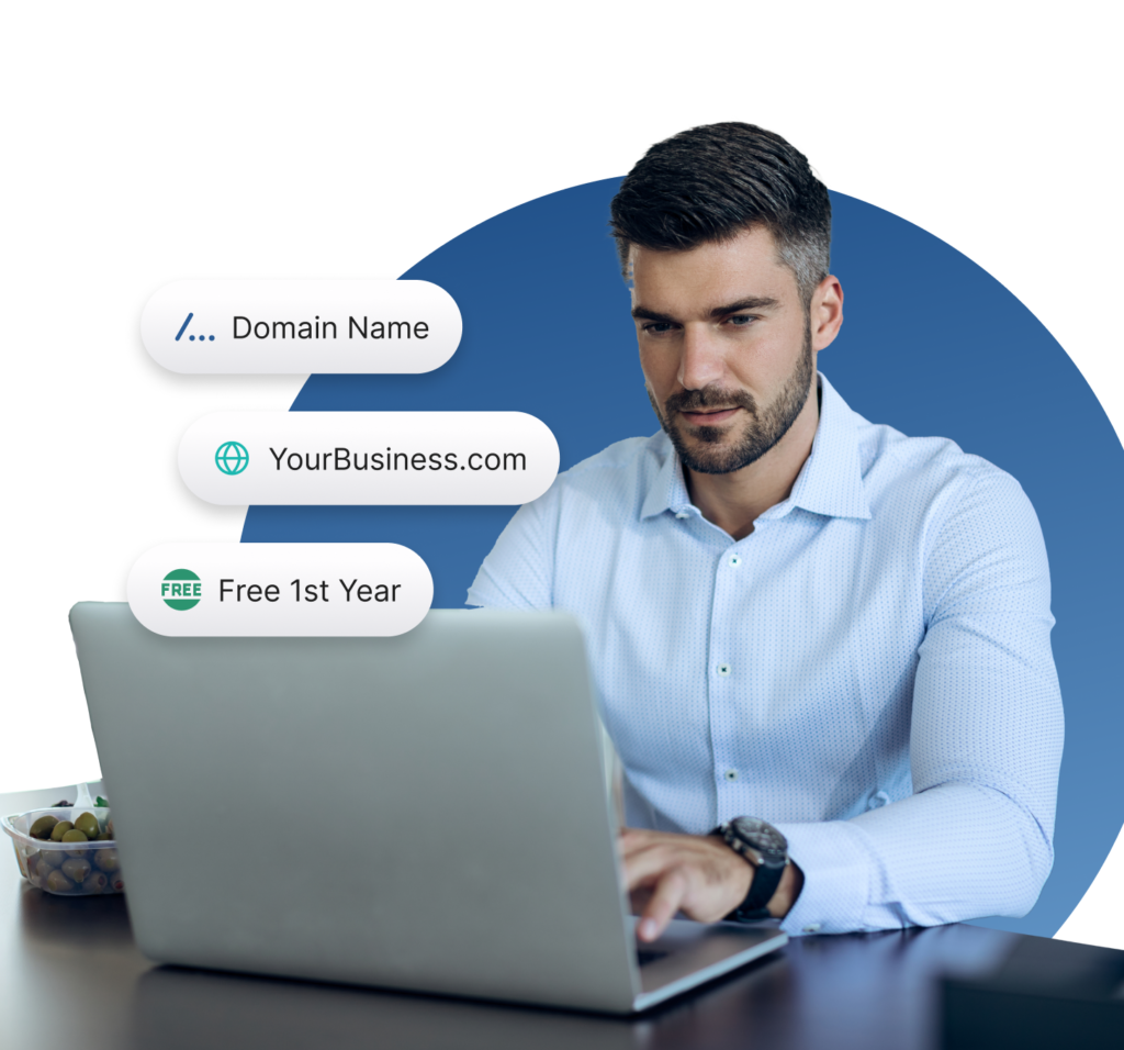 Your custom domain (e.g., www.YourBusiness.com) makes your business easier to find and more professional. Domains are free for the first year (up to $25). Existing domains can be transferred if registered for at least 60 days.